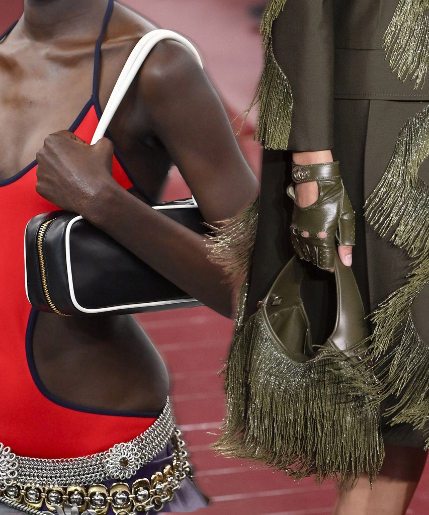 When you think of a fringe bag, your mind may wander to the festival grounds at Coachella. Not so fast. Sure, the style is certainly primed for a concert in the desert, but designers’ new versions are more refined than ever before. Gucci presented an olive green leather bag with a cascade of fabric, while Fendi showed a dreamy blue carryall featuring fringe on the sides. There’s also something so satisfying about a fringe tote swaying back and forth as you waltz down the street, no?