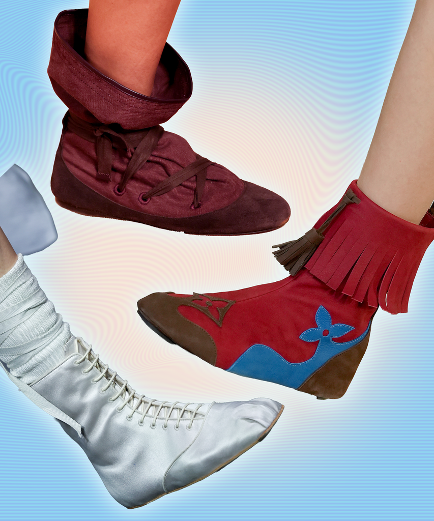 Last year’s boxing boot trend set the stage for a more prim and polished throwback in 2026. Enter the sock boot. Perhaps you remember the 2016 version of this boot, and how the structureless silhouette looks great with pretty much anything. Opting for a leather or suede pair à la Courreges, Lemaire, and Ann Demeulemeester will earn you plenty of sartorial mileage. Those looking for something playful should opt for a floppy moccasin style like the sock boots from the Louis Vuitton runway. Either way, layer these kicks under dresses or wide-leg pants for well-balanced proportions.