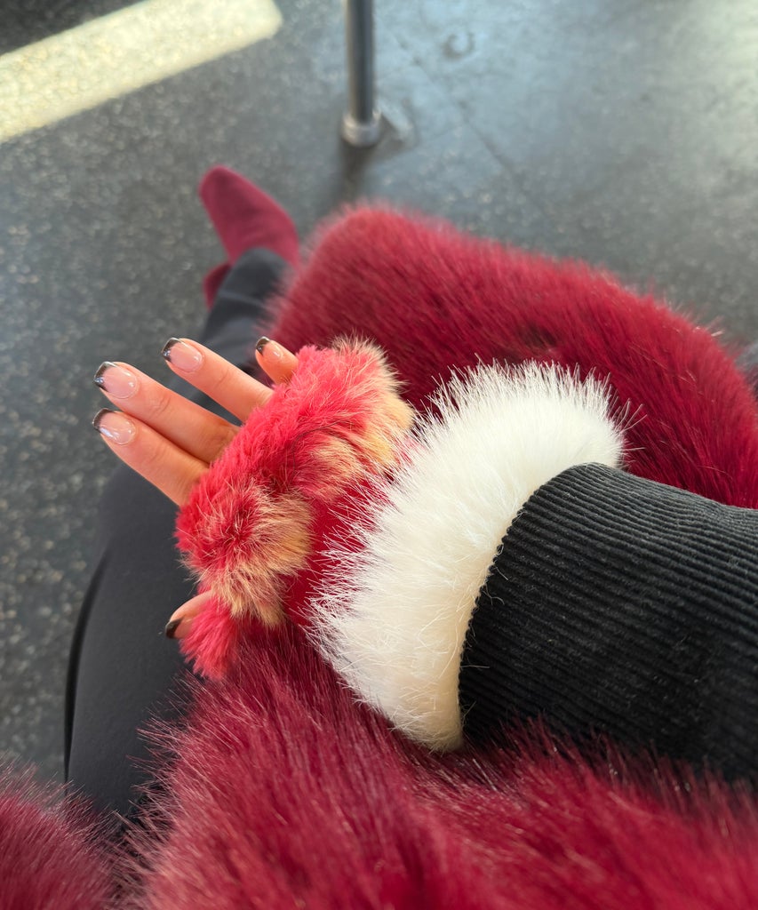 I excitedly whipped out the funky magenta fur mittens I had purchased as a tween. (While they at one point revolted me, they’re of course back in style and add a touch of whimsy to every winter outfit.) I also slipped on my burgundy Vivaia knit waterproof boots, which were the perfect touch of color and texture (and sensible for the snowy streets).