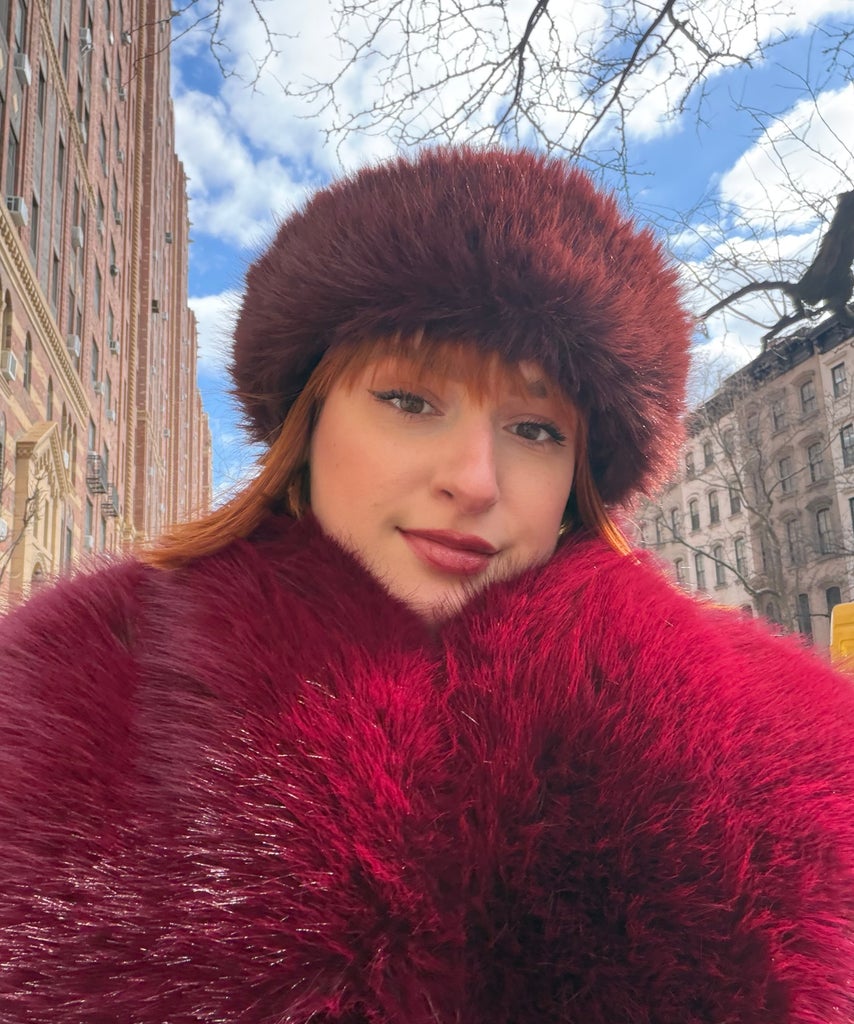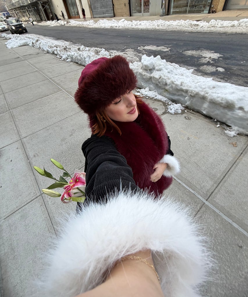 The cherry on top of this ’20s-esque look came about while rummaging through TJ Maxx (my favorite pastime). I stumbled on a burgundy faux fur trapper-like hat that felt like it was from a past era, and knew I wanted to wear it during NYFW.