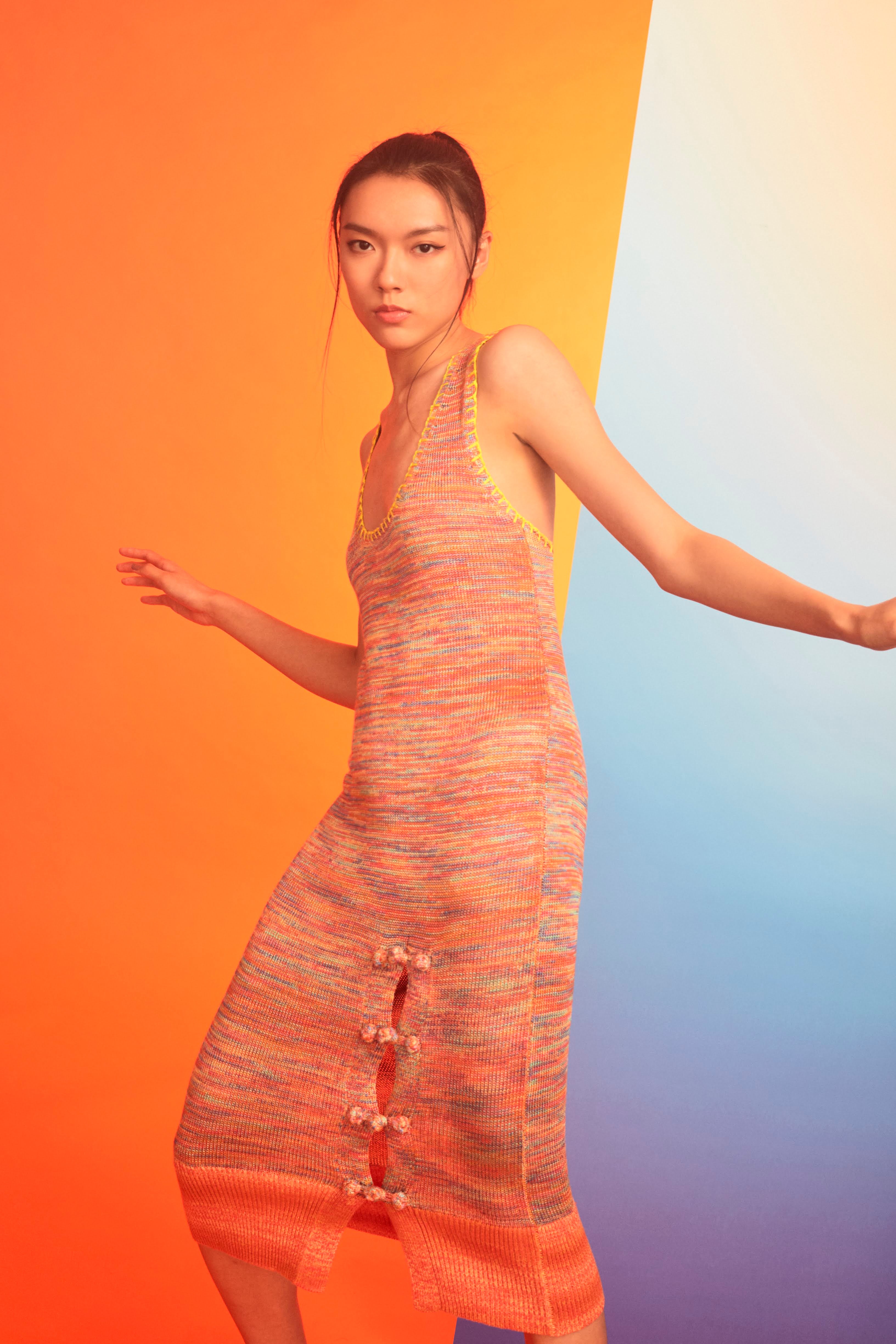 “In this collection, we wanted to explore mixing and matching colors and patterns and stripes, and how to create fun twinsets that can match and look eclectic at the same time.” The result? The perfect blend of YanYan’s specialty knits with bold details like neon stitching and piping, and the introduction of space-dyed fabrics taking the shape of button-downs, midi dresses, and skirts. In addition, expect a small selection of handbags, both designed using leftover fabrics from previous seasons as a way to avoid waste and to continue the legacy of the brand’s past collections.