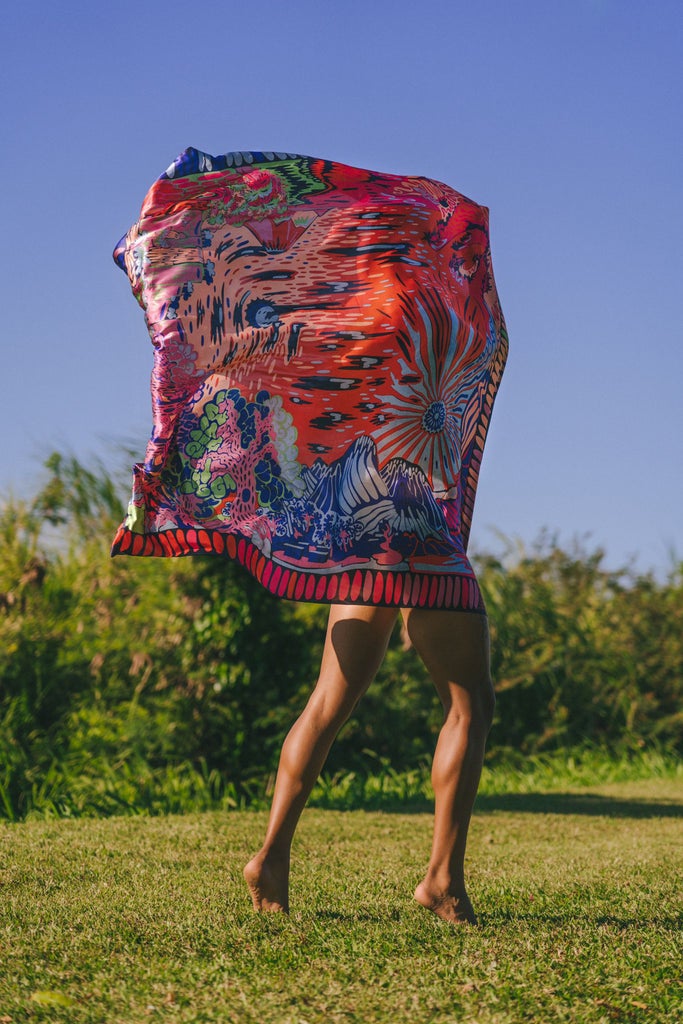 Forastieri also leaned into sustainable practices, using natural dyes to create the larger-than-life prints the brand is known for. “I learned a lot about how wasteful dyeing with Pantone colors is,” she says of the collection, which includes some synthetic dyes. “So I tried to find a way to reduce that waste without sacrificing the vibrancy of the colors.” She partnered with other creatives for this pursuit: For example, for the magenta color in the “El Amanecer” (the dawn) top and pants, Forastieri tapped Brooklyn-based artist Cara Marie Piazza, who has previously worked with designers like Jason Wu, Eckhaus Latta, and Mara Hoffman, to create the shade from flowers. Forastieri says she’s looking for other ways to tap creatives in Puerto Rico who are using organic elements, like algae, to create original shades for future collections. “Those are alternatives that are much more in balance with our natural habitat,” she says.