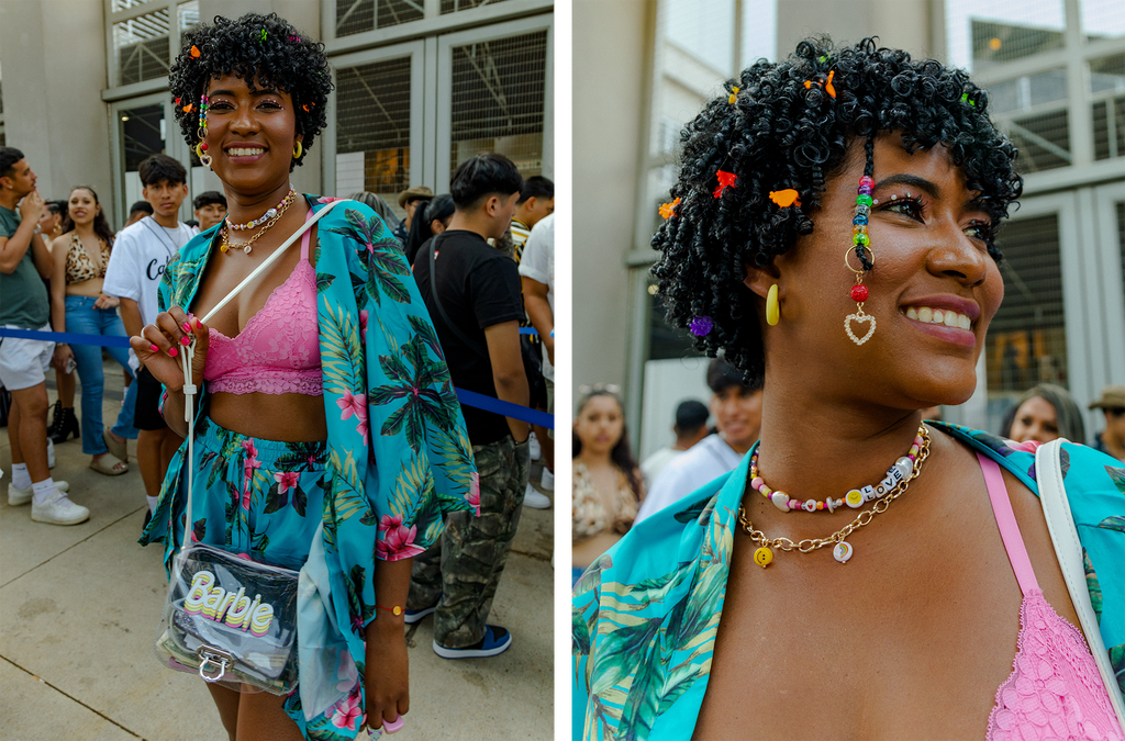 “This album and tour is just a vibe,” Joarly Vasquez told Refinery29 outside Yankee Stadium while wearing a blue mini dress with white platform boots. “I feel like this outfit gives that because it’s carefree. I put this on and felt more confident. It’s giving ‘bad bitch’ vibes.”