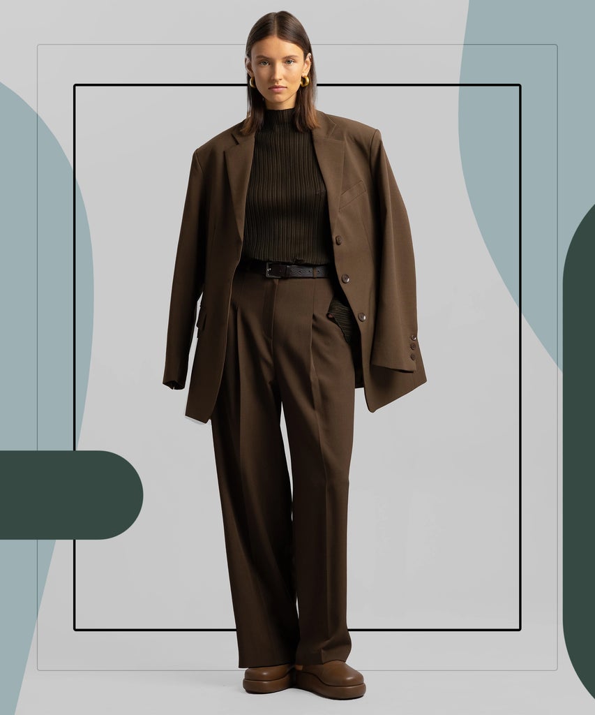 Trousers have long served as a staple of the work uniform, but these days, they work just as well for weekend brunch or even Friday-night drinks. There are two factors to keep in mind here. First is fit — you want a pair of trousers that are high-waisted and loose through the leg. Second is how you style them. A blazer or button-down are obvious choices in a more corporate setting, but a silky tank or cropped tee will make slacks feel more relaxed.