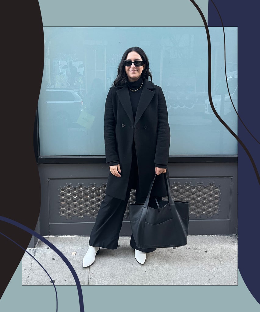 While I’ve worn mostly black for nearly a decade, I’ve stayed away from wearing it head-to-toe for some time now, trying to step outside my comfort zone; if not for myself, then for the sake of being an adventurous fashion journalist. But leaning on old friends — a black turtleneck, trousers and coat — instantly eased my anxieties in the morning. The simplistic canvas felt elevated and comfortable, but boring. Thankfully, I’ve now added other colors to my closet — similarly muted shades such as navy, grey, brown, and white — so with this in mind I grabbed a pair of white ankle boots that gave the outfit an understated twist.
