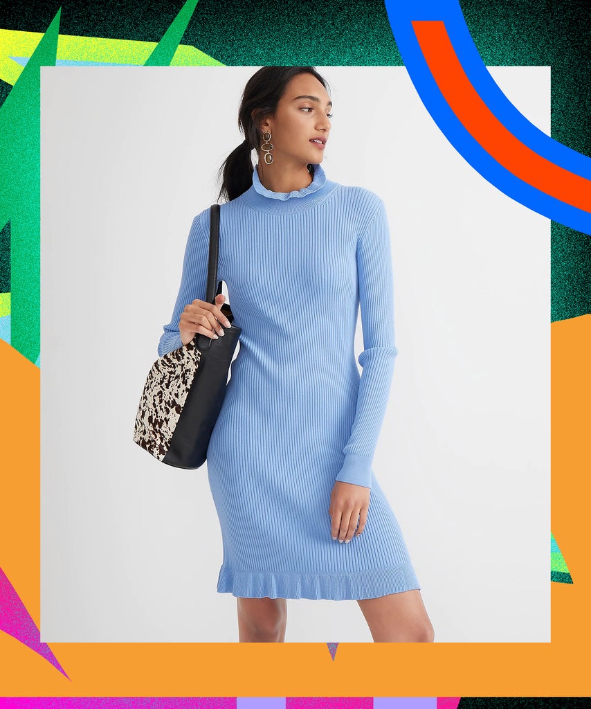If scrolling through the site is the last thing you want to do right now, we got you. Keep reading to shop our picks from this ultra-cozy J.Crew sale — from sweater dresses and trendy cropped puffer jackets to satin pink pants and soft turtlenecks.