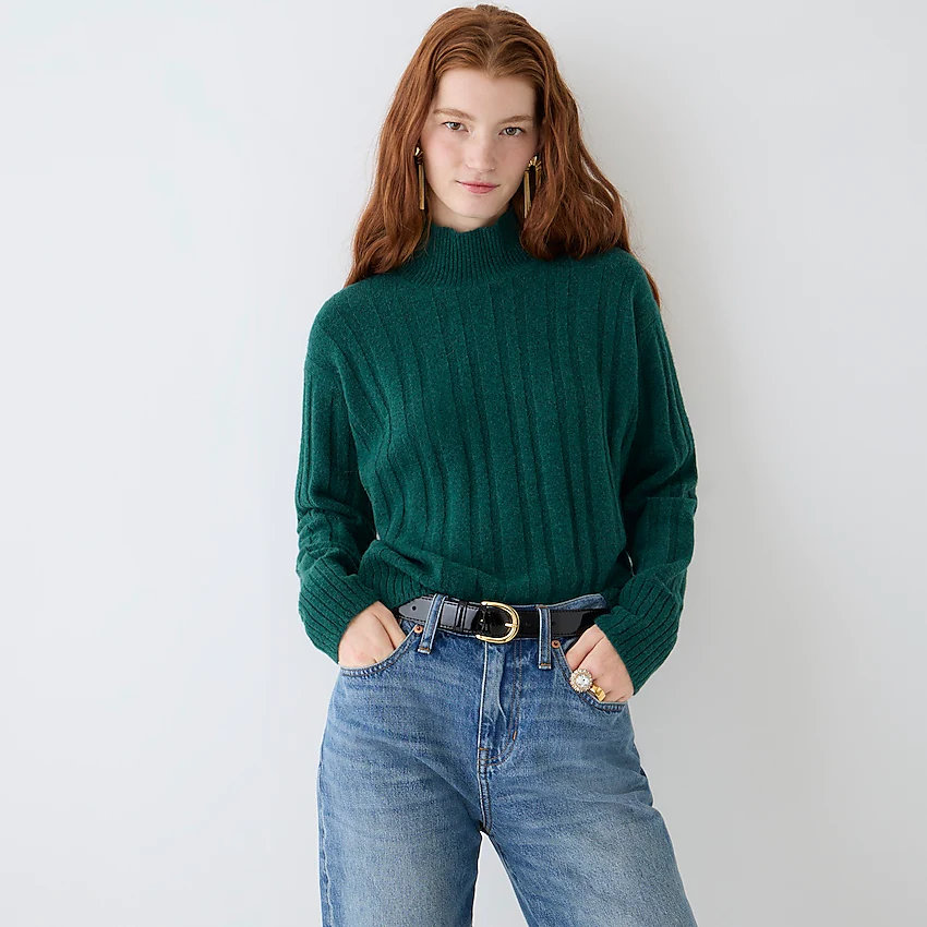 J.Crew Ribbed mockneck sweater in Supersoft yarn, $, available at J.Crew