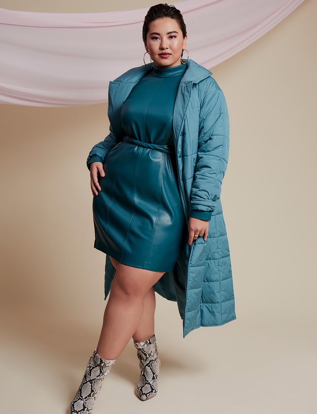 If you are a fashion person, you've seen these bright-colored, wrap puffers inundate social media for a few months now. This one from Eloquii in this dreamy aqua is EVERYTHING.