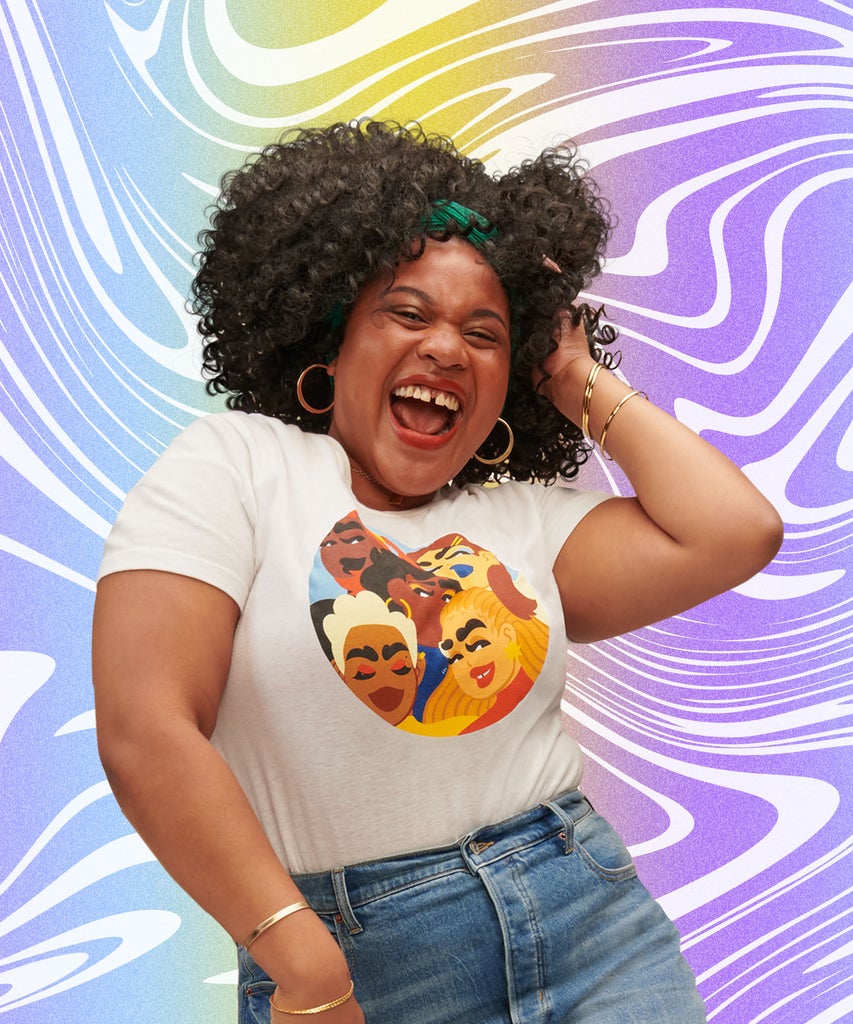 “I want people to embody my shirt’s fun, celebratory vibe. To feel gratitude for life and cultivate a sense of joy in spite of a painful history. Representation matters, so what better way for me to celebrate my image than to hide a part of myself in the design? One of the characters is heavily inspired by what I look like in a fresh set of box braids.”