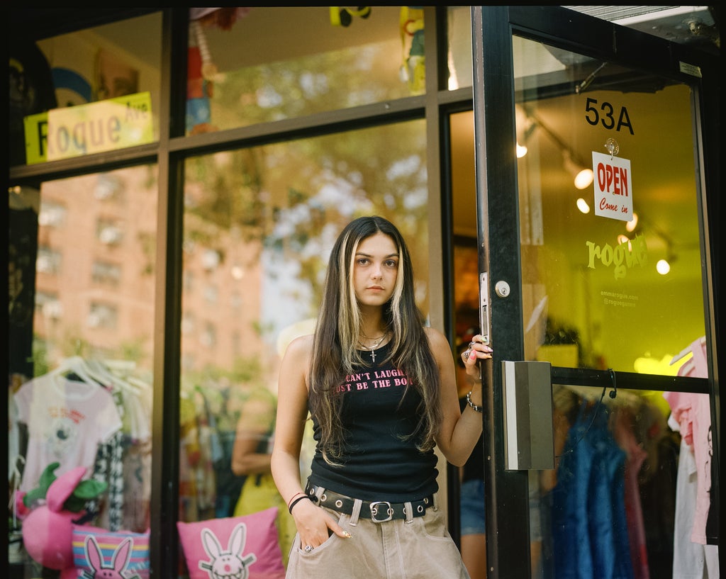 Emma Rogue has been an avid thrifter all her life. As a kid, she stopped by a secondhand shop near her gymnastics club in Bedminster, NJ, every weekend to scour the racks for used clothes from brands like Abercrombie & Fitch and Hollister instead of buying the pricier models at the local mall. A decade later, she turned her lifelong affinity for thrifting into one of Manhattan’s most popular vintage shops, Rogue.