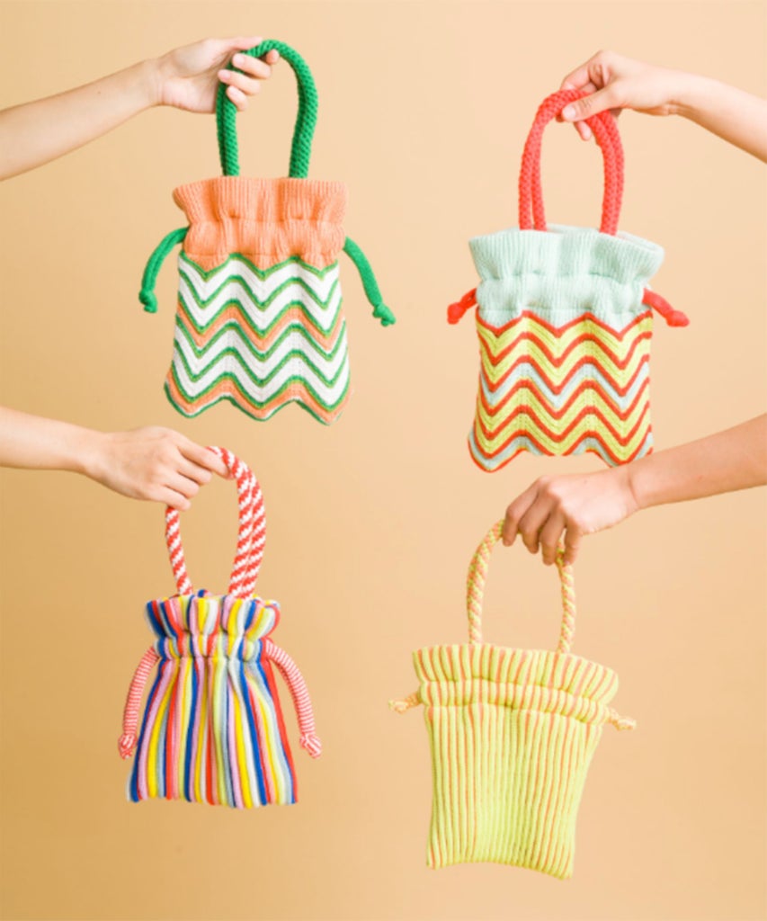 “We launched some new bags this spring that we’re really excited about. The Scrap Stuffed Tote is a see-through puffy quilted bag that works in our hardest-to-use deadstock remnants. We took separator yarn—used between pieces of machine knitting—and cut it up into stuffing, then quilted it with semi-transparent ripstop fabric. Ordinarily, this separator yarn would have been snipped off and discarded. But we’ve been saving ours, knowing we wanted to figure out a way to use it. Each bag is handmade and one-of-kind. It took a lot of experimentation to get the quilting technique right and we just love how it turned out. The plush and colorful stuffing in these bags is just one way we reduce textile waste with creative solutions.”
