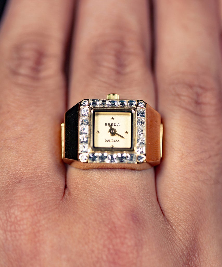 After researching online, I’m right on trend. Recently, Fossil released a stainless steel watch ring that comes in gold, silver, and copper tones, complete with a sound watch and dial that’s reminiscent of the brand’s signature wrist watches. Last month, the brand also partnered with Barbie for a floral version. Meanwhile, M Jewelers, a New York-based contemporary jewelry brand, sells a pinky ring in the shape of an old school Casio watch that nods to the trend even if you can’t actually tell time with it. The ring watch is being endorsed by New York It girls like Brynn Wallner, the watch connoisseur behind the popular blog, Dimepiece, which is demystifying gender constructs around timepieces.