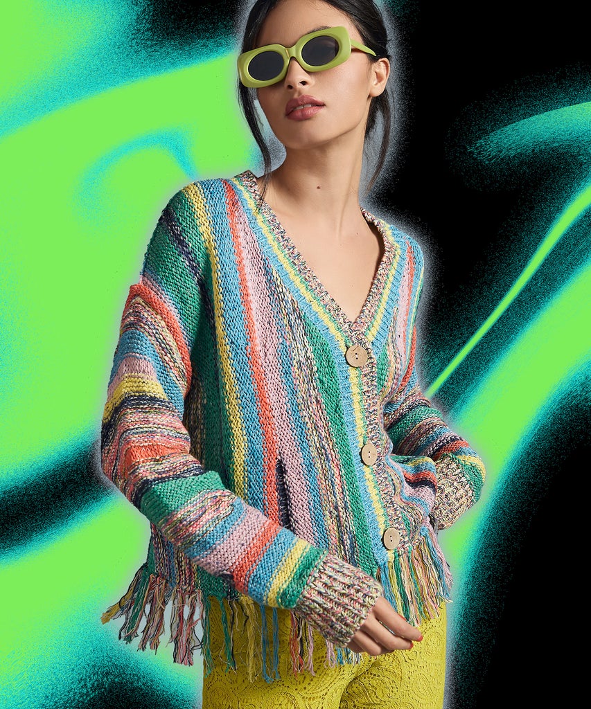 Introducing an ensemble that’s a blast from the past. While fringe is commonly associated with Western fashion, we’re highlighting the groovy, free-spirited vibe of the ’70s with its lively prints, quirky designs, and bold colors. *Color maximalists have entered the chat* Let loose a little and upgrade your off-duty ensembles with a playful statement look.
