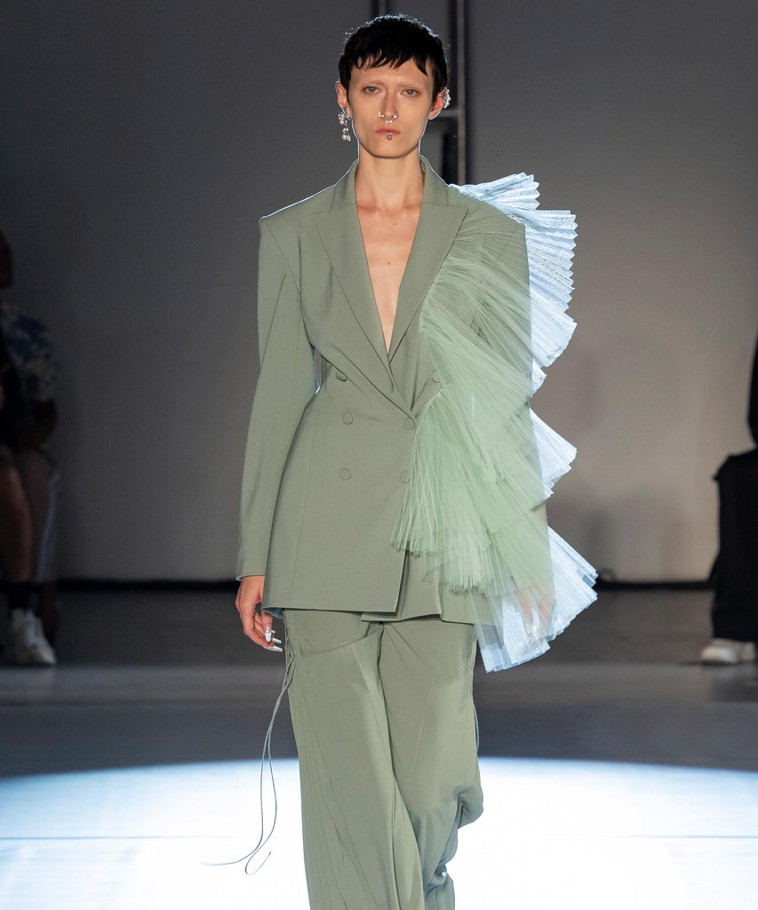 For spring/summer 2024, designers are inviting shoppers to treat themselves to a night at the opera. At Adeam, tulle detailing and powdery shades of green and pink were featured on classic suits (see top photo) that would convert the most ballet-averse into bonafide patrons. Meanwhile, designers like Bach Mai and Christian Siriano mixed corsetry and tailoring in mini dresses and gowns that gave the unitard uniform a new high-fashion meaning.