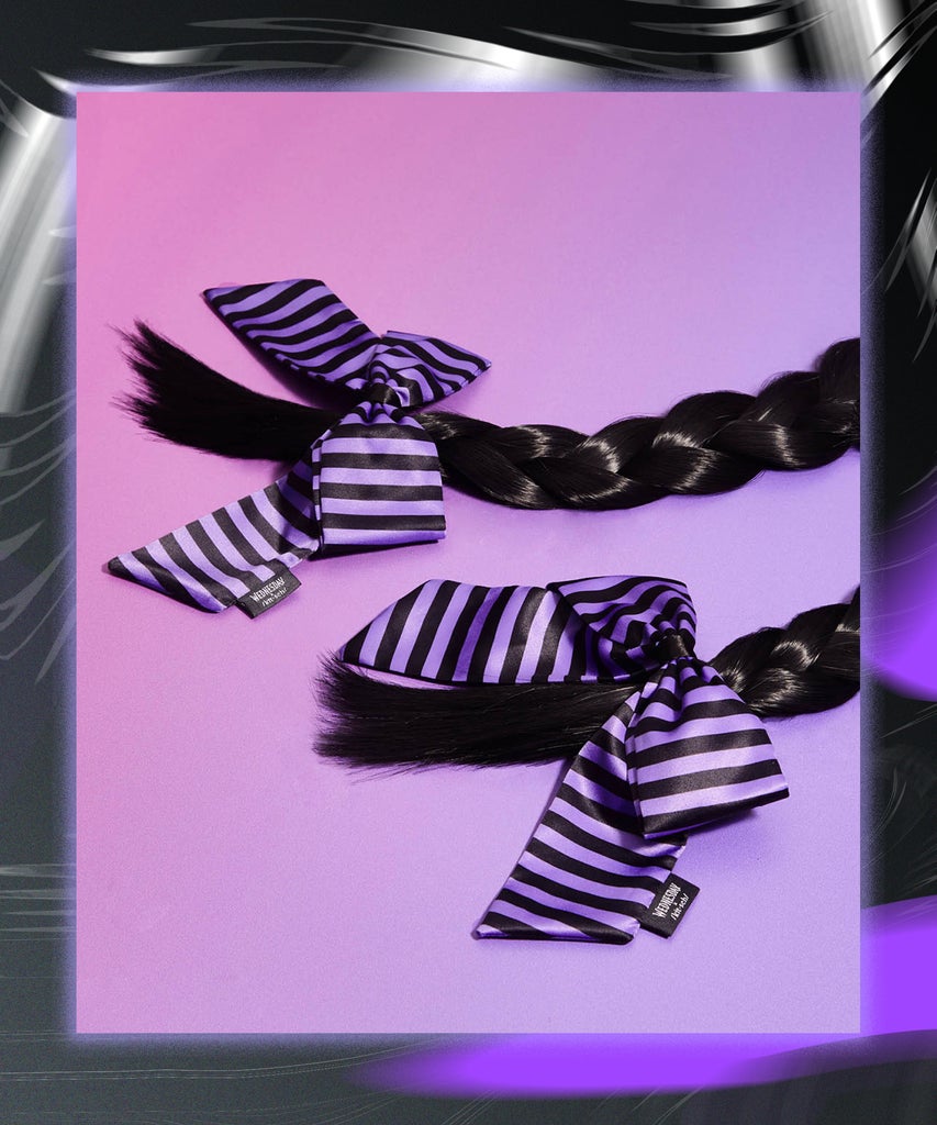 Beautifully modeled by Thing from the Netflix series, this scrunchie duo set is great for adding flare to your updo. Show some school spirit with the purple-and-black striped one that’s reminiscent of Nevermore’s uniforms, or go for the black-lace style, which Wednesday would’ve definitely rocked at the school dance to complement her black-lace dress.