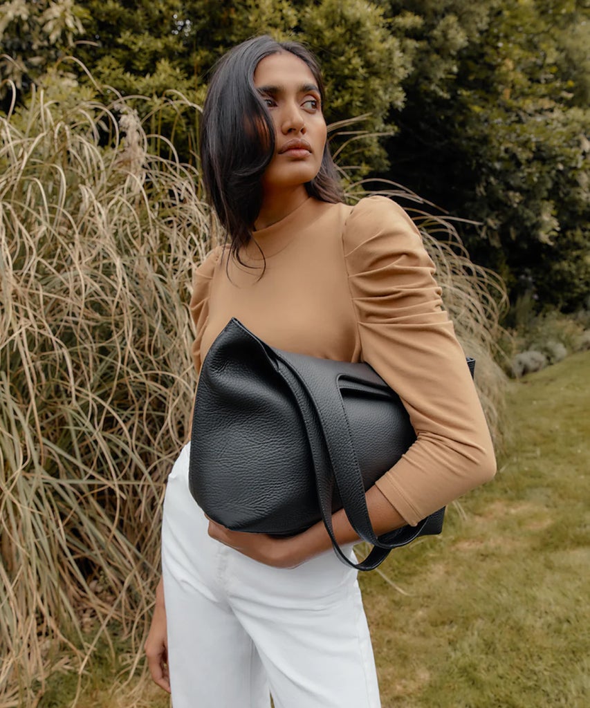 Gallardo and Shah first founded Cuyana to provide core essentials for “a woman that’s on-the-go” and have largely maintained the same strategy over the past decade. “Back then, there were no premium quality leather totes on the market at less than a luxury level price point,” Gallardo remembers. “The coolest thing is that because we deliver it on quality, those bags are still being worn out there, and women are so proud to have them.”