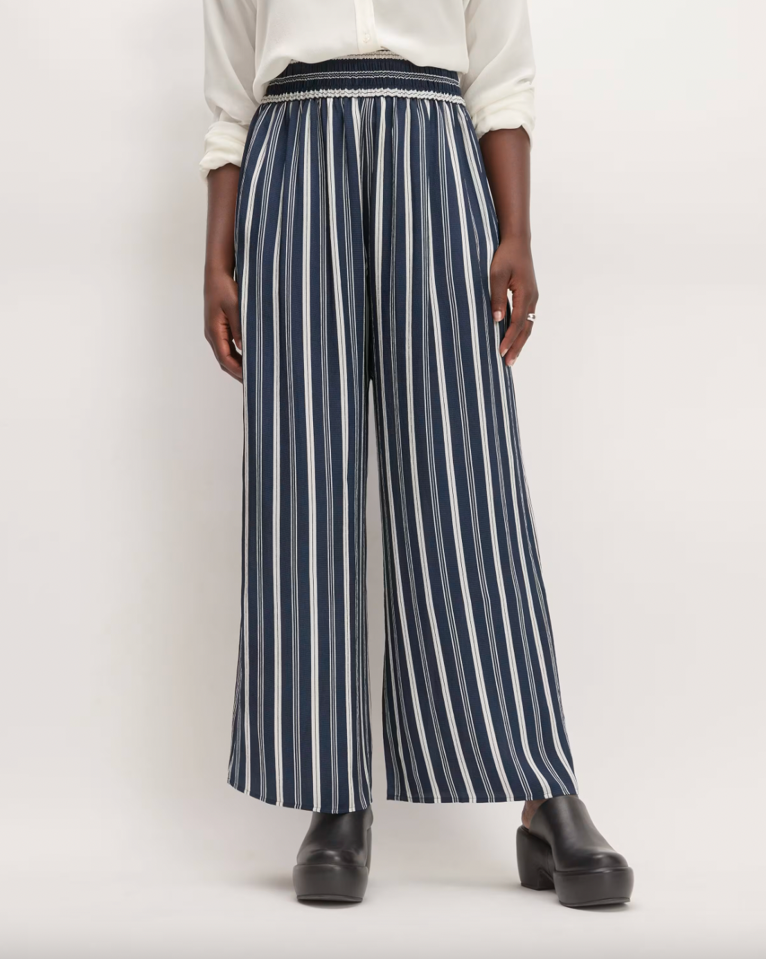 Everlane The City Stripe Shirt, $, available at EverlaneA nipped waist and wide legs make these a seriously on-trend pair of pants at a seriously wallet-friendly price.