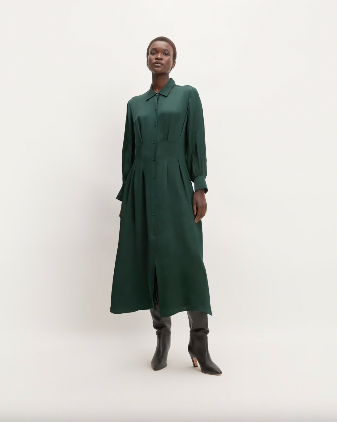 Everlane The Hammered Satin Shirt Dress, $, available at Everlane