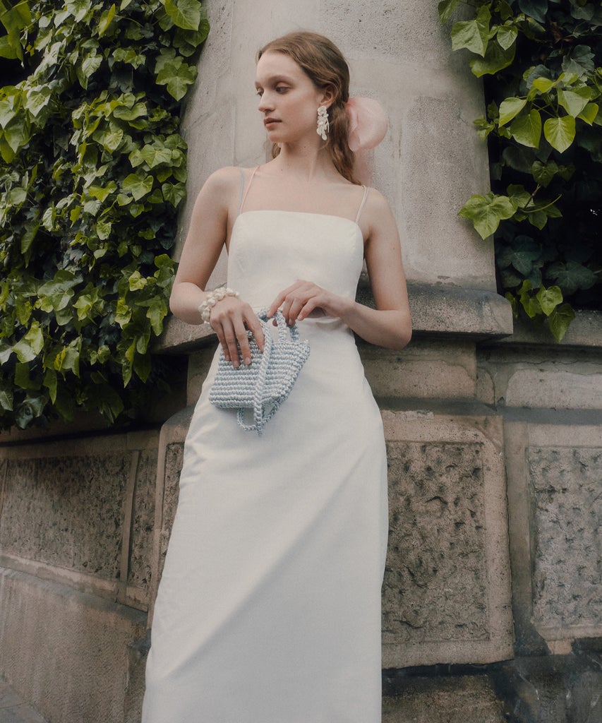 Launching today, the second drop from the American mainstay and the Ukrainian womenswear brand offers a minimalistic, elegant take on timeless, feel-good closet staples. Full of bright, cheerful colors, the 12-piece capsule collection includes pastel-colored slip dresses with lingerie-inspired details — an Anna October signature — a structured blazer, matching satin sets (think: a black bralette with shorts, and a white sleeveless top with wide-leg trousers), and three white dresses that will have all your special-occasion dressing needs covered whether you have a wedding, a summer party, or a night out with the girls on your social calendar this summer.