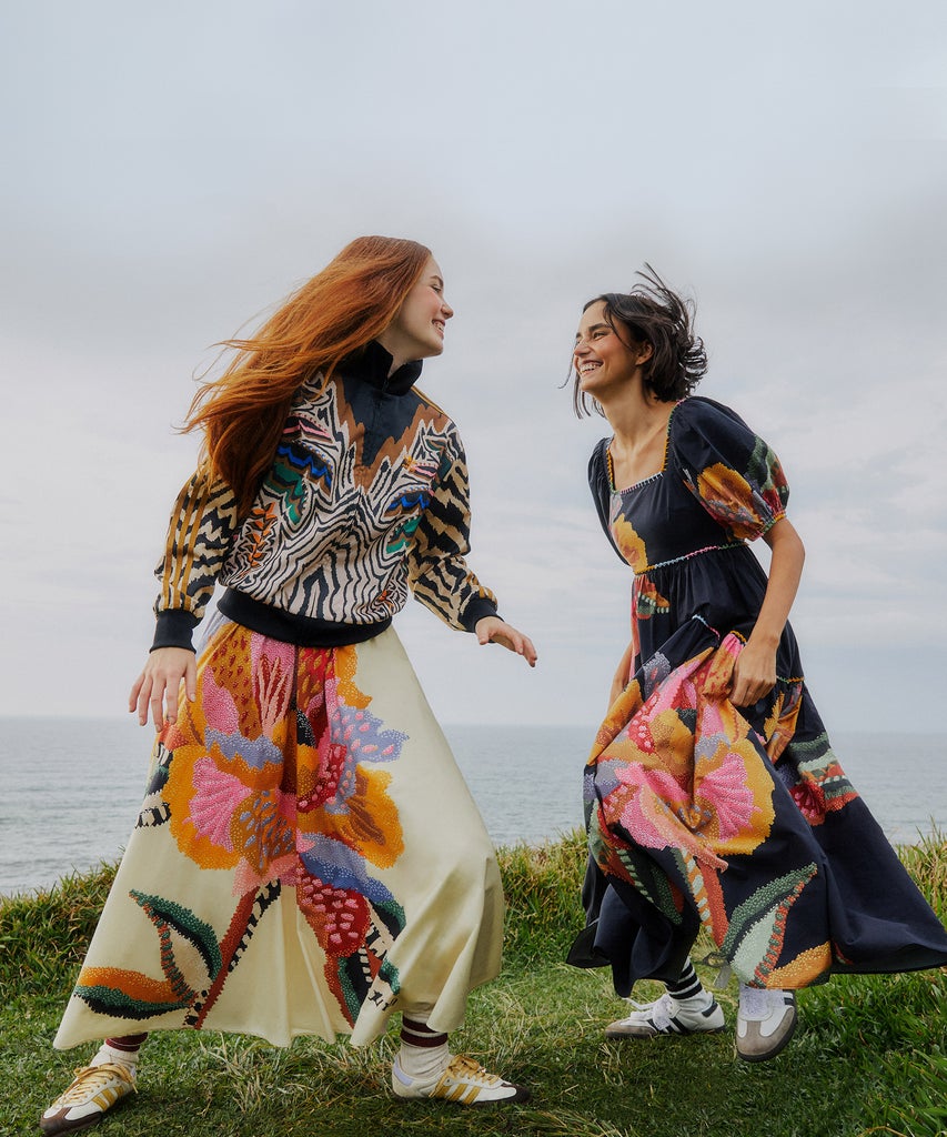 The Brazilian label known for its tropical prints and happiness-inducing colorways has actually been working with the iconic sportswear brand since 2014. (It’s one of the latter’s longest running partnerships, alongside other big names like Stella McCartney and Yohji Yamamoto.) This capsule marks the 10-year milestone by injecting Adidas Original streetwear and Farm Rio favorite silhouettes with vibrant hues and patterns that’ll brighten up these fall days.