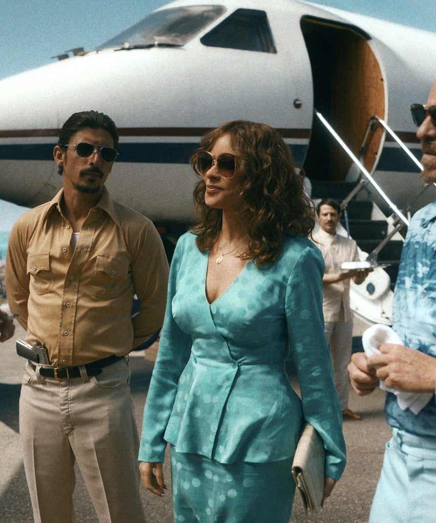 Sociologist Didier Correa, who has written vastly on the subject, explains that narcos act as tastemakers, even decorators, and that beyond their criminal activities, they also create a culture. We saw this play out with figures like Al Capone, who had a serious thing for exquisitely tailor-made suits, and with John Gotti’s lavish and pricy attire. While not entirely factual, Griselda also leans heavily into aesthetics, with gorgeous clothes and interior decoration seen throughout the series.