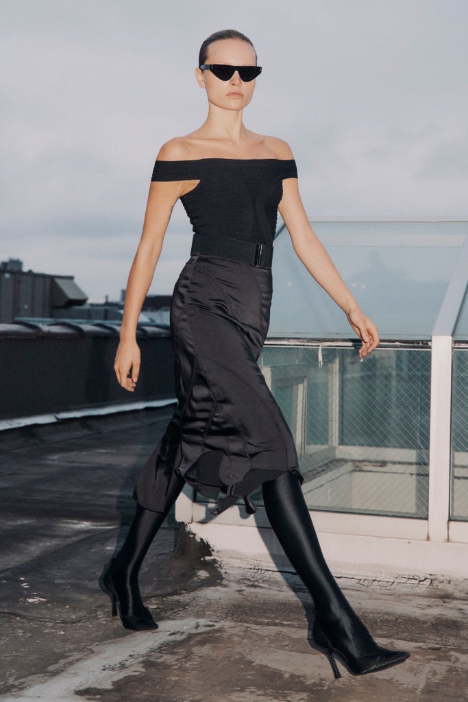 To set the tone for the new brand direction, for the debut lookbook, Ochs and stylist Natasha Royt put the models in tights and shot them against Manhattan as a backdrop. “I wanted to show her with her hair down, not super-snatched, because I think that all feeds back into what people remember Hervé Léger previously like — as clubwear, and eveningwear which it still is but the modern woman has changed,” says Ochs. “It is still the same amazing product, but like let’s maybe not put her in the heel… let’s cover her up.”
