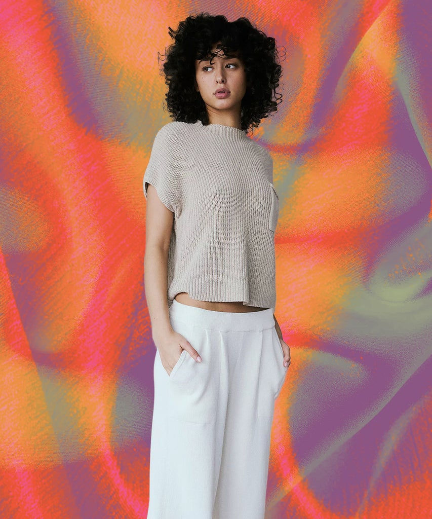 When asked what Charli’s Brat essentials are in a BBC Sounds interview, the singer suggested the aesthetic teeters between “quite luxury and so trashy” and that she’d wear “a strappy white top with no bra.” This is exactly what she wore in the viral 360 music video, a look that she styled with black briefs and sheer black tights, but even before that, she wore a tattered T-shirt-inspired gown to the 2024 Met Gala (above). For everyday life, opt for a classic white tank top to wear on its own throughout the hot summer or to serve as a staple layering piece. And if you’re looking for something more playful and kitschy, take inspiration from Charli, who sings about baby tees in 360, and her fans, who have been wearing Brat-inspired graphic T-shirts.