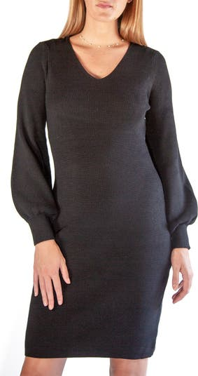 Nina Leonard V-Neck Balloon Sleeve Sweater Dress, $, available at Nordstrom Rack