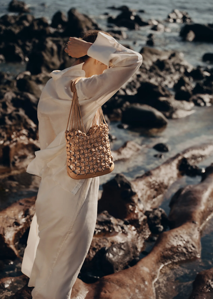 While these summer styles often include minimalist wardrobe staples — think relaxed matching sets, flowy maxi skirts, and comfortable walking sandals — they’re not without a playful side (you’re on vacation, after all). This translates into silky printed scarves, retro swimsuits, and kitschy handbags, as well as designs that lean into the fisherman aesthetic and “sardine summer” territory.