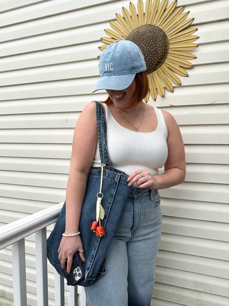 Want to keep your denim touch subtle? Try it in the form of accessories. Baseball and cowboy hats, tote bags, sneakers, statement belts, or even a denim phone case can tie your look together without being the whole story.