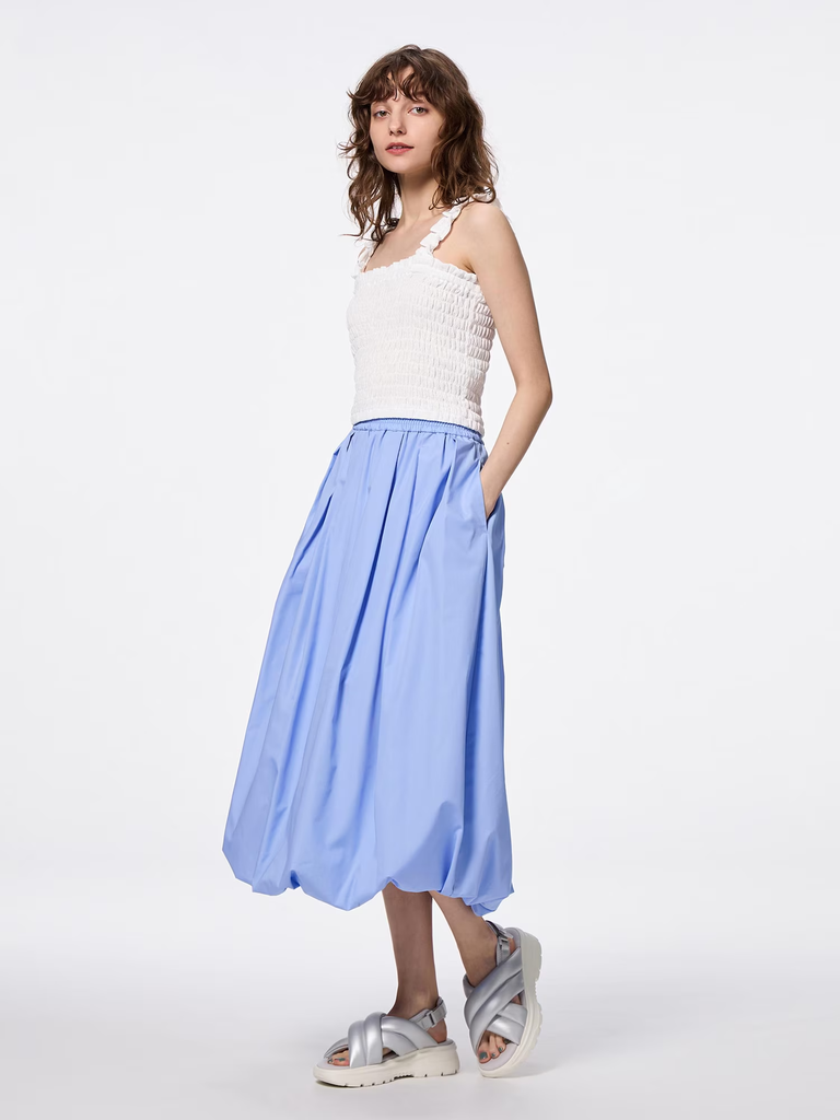 Wearing a midi skirt with a pair of knee-high boots is an easy way to experiment with the balance and proportions of an outfit while also elevating the overall look.