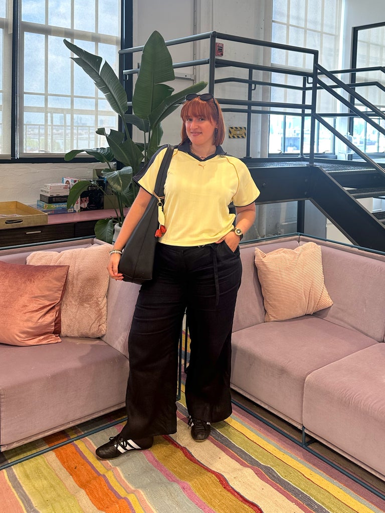 To test the jersey-at-work theory, I wore my butter yellow cropped Puma jersey to the Refinery29 office. It didn’t feel too casual or out of place, thanks to a few key styling choices: I paired it with belted linen pants (that basically pass for black trousers), plus my sleek Adidas Taekwondo sneakers — no cleats in my closet (yet). But if you’re skeptical about the emerging trend, ballet sneakers (aka sneakerinas) offer a more wearable twist.