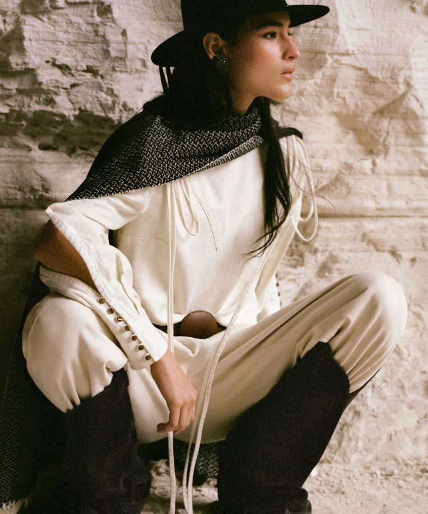 “Lorena Saravia has created an original vision of Mexican fashion, honoring the culture through collaboration with local artisans, while crafting a highly covetable, modern wardrobe defined by a bold, feminine spirit,” according to an H&M press release. The collaboration includes artisan-crafted, Western-inspired pieces spanning outerwear, matching sets, and even cowboy boots, all channeling a signature masculine-meets-feminine style.