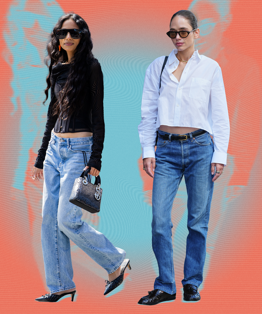Straight-leg and cigarette jeans work best in outfits that are all about clean lines — for one such example, look to Valentino’s Spring/Summer 2026 collection. Try adding a structured blazer or, for balance, a soft cardigan. If you’re on the shorter side, it can be extra helpful to have these jeans tailored at the hem to ensure there’s no pooling at your feet. In a pinch, wearing heels or using some iron-on hemming tape can also help.