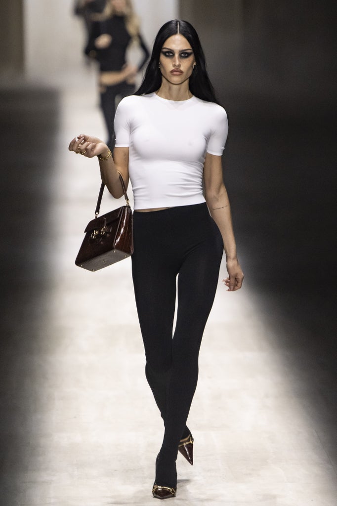 In the midst of sequin-adorned gowns and crystal-covered thongs à la Tom Ford-era Gucci, Gvasalia’s vision put a spotlight on the humble black legging and a classic white T-shirt. Yes, basically the same outfit I wore to the farmer’s market over the weekend. This is a huge departure from the theatrics of Alessandro Michele’s tenure and it even feels quite different from the elevated ease of Sabato De Sarno’s “quiet luxury” creations. Putting Amelia Gray in a high-fashion version of “errand-core” pieces proves that fashion is out of the era of creating “art for art’s sake” and is now doubling down on the pieces consumers actually live in.